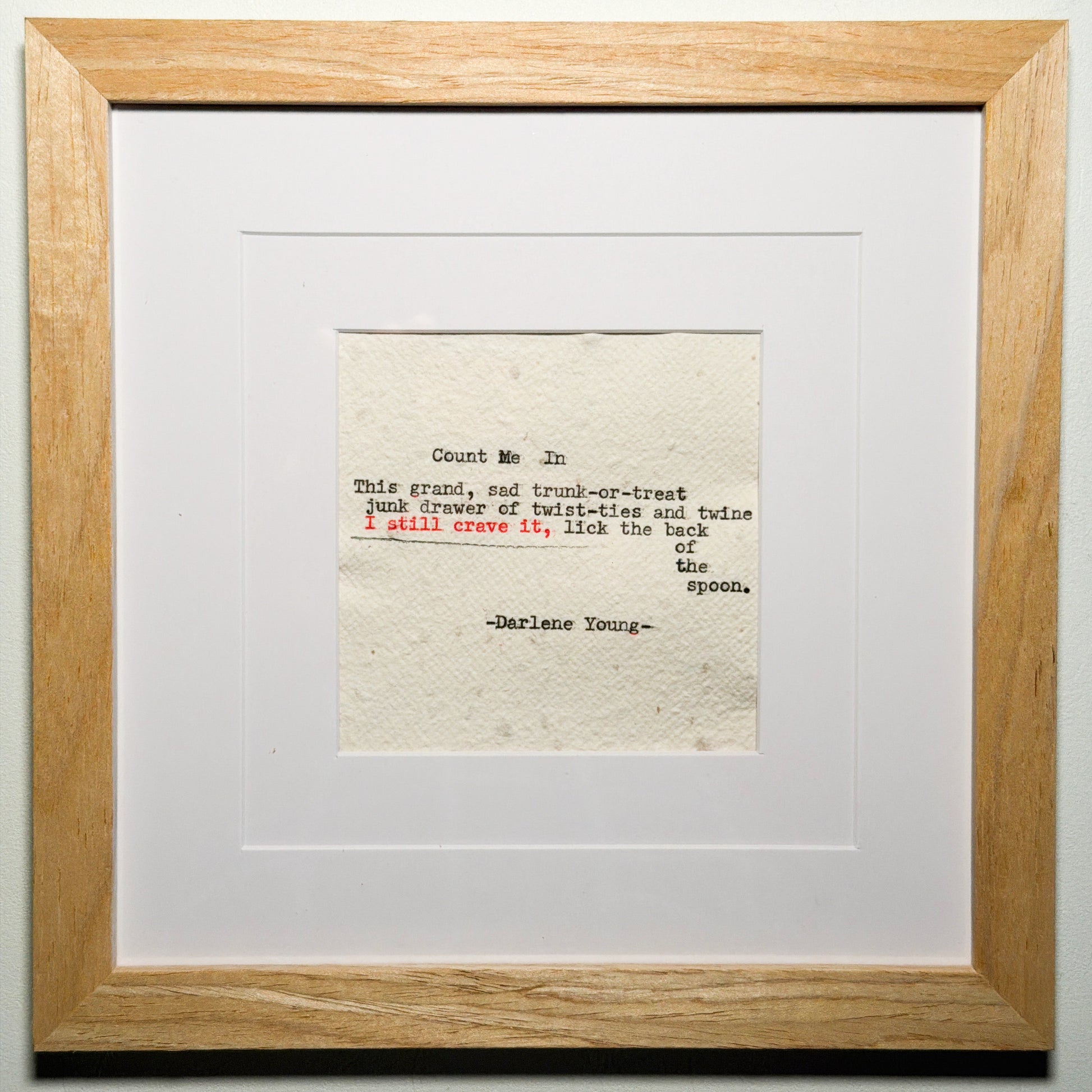 stanza from poem, typed on handmade paper